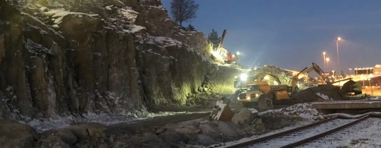 Sprenging av del av Duekniben, ca 35.000 m3, og transport og levering av massene til tilstøtende mellomlager / deponi.
