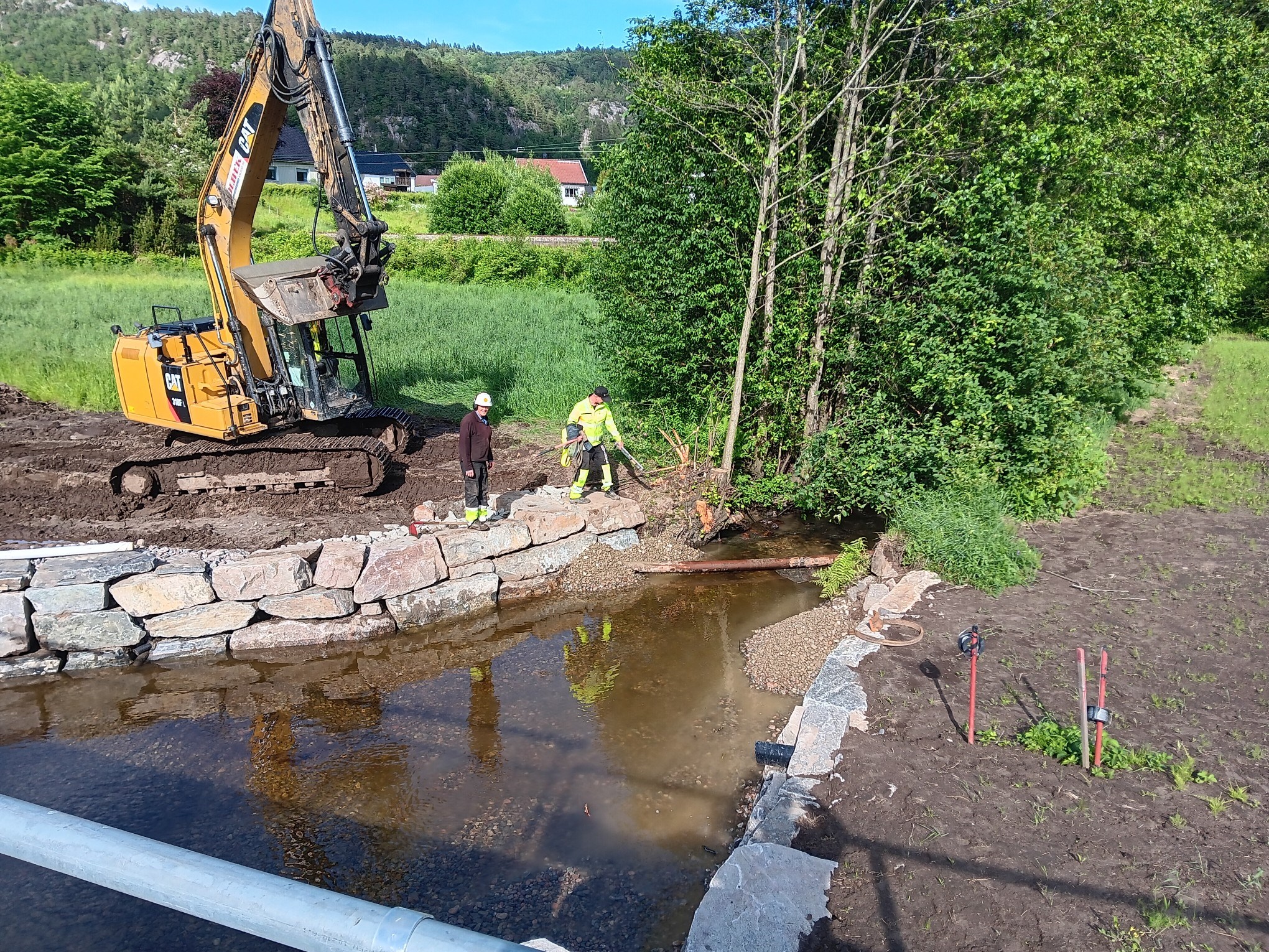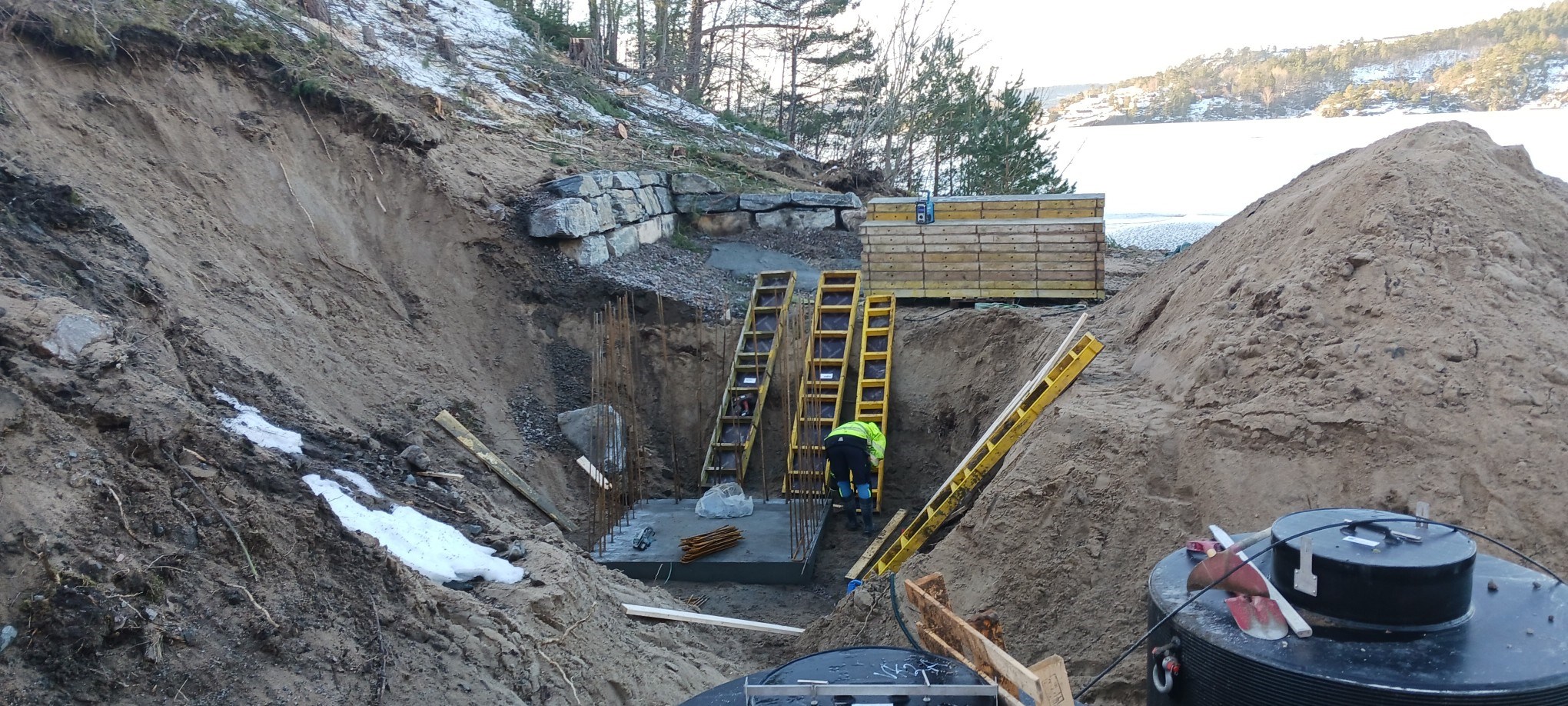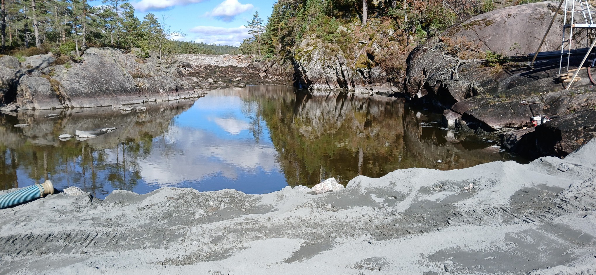 Grunnarbeider i forbindelse med bygging av ny kraftstasjon ved Kilandsfoss i Nidelva på grensa mellom Froland og Åmli.