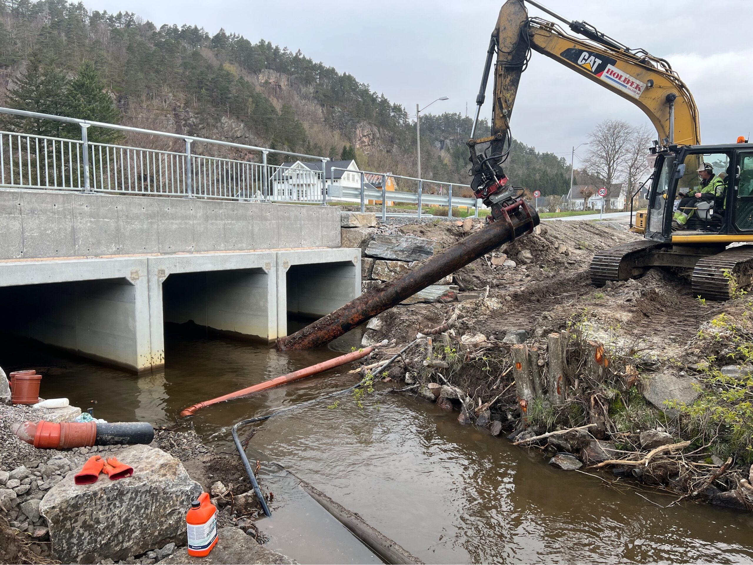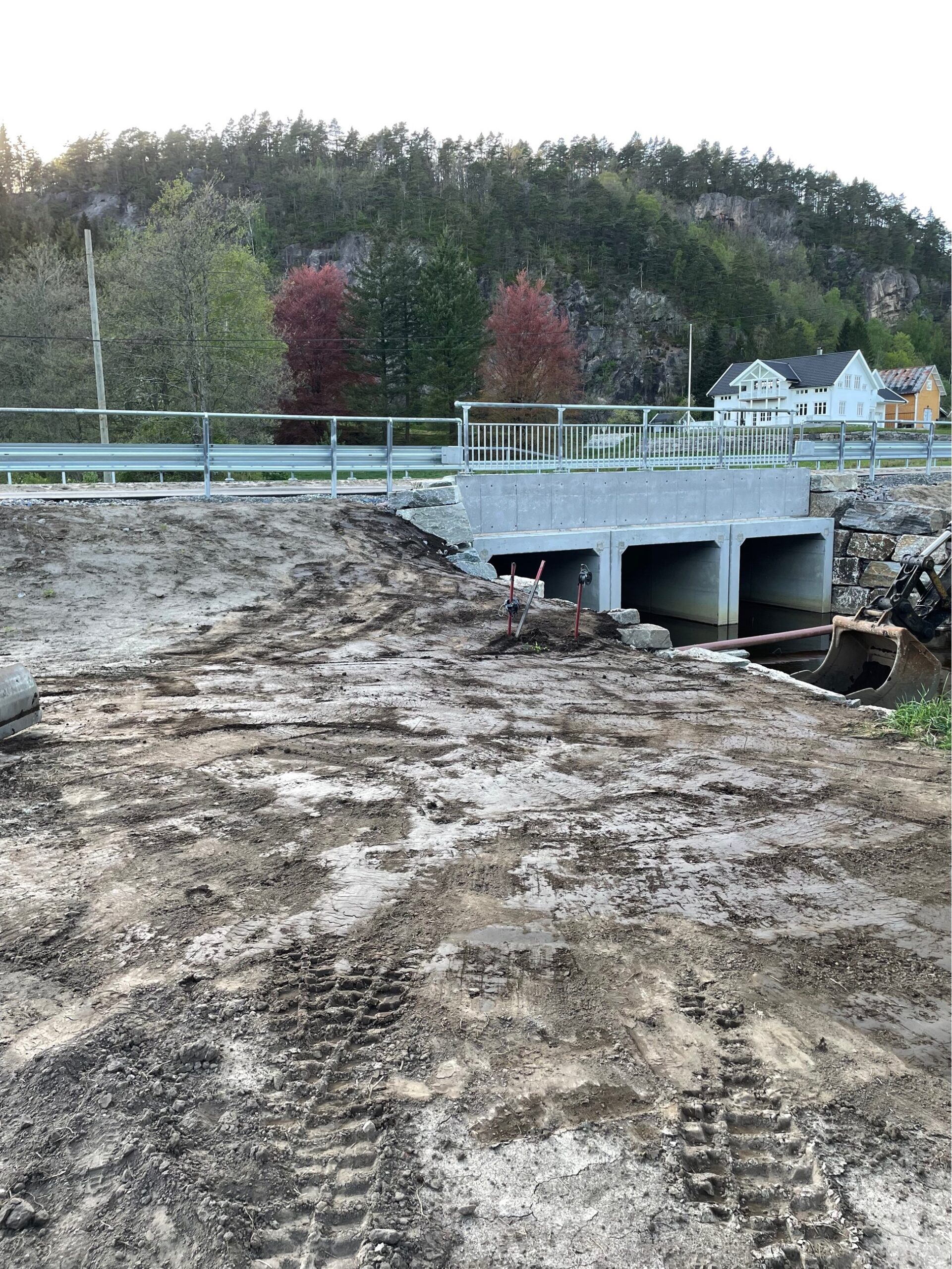 Fjerning av broer og etablering av nye kulverter for å bredde ut veien.
